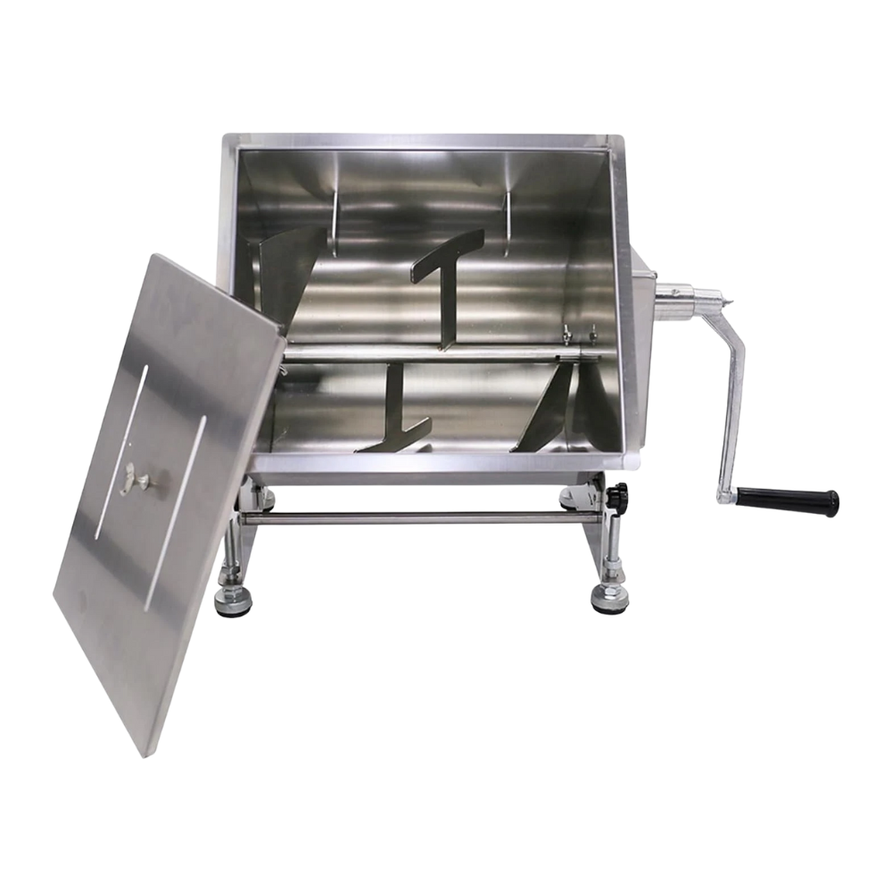 Its dual-paddle system rotates in both directions, folding meat and seasoning evenly throughout the batch. The hand-crank operation provides complete control.
