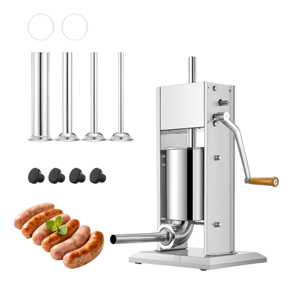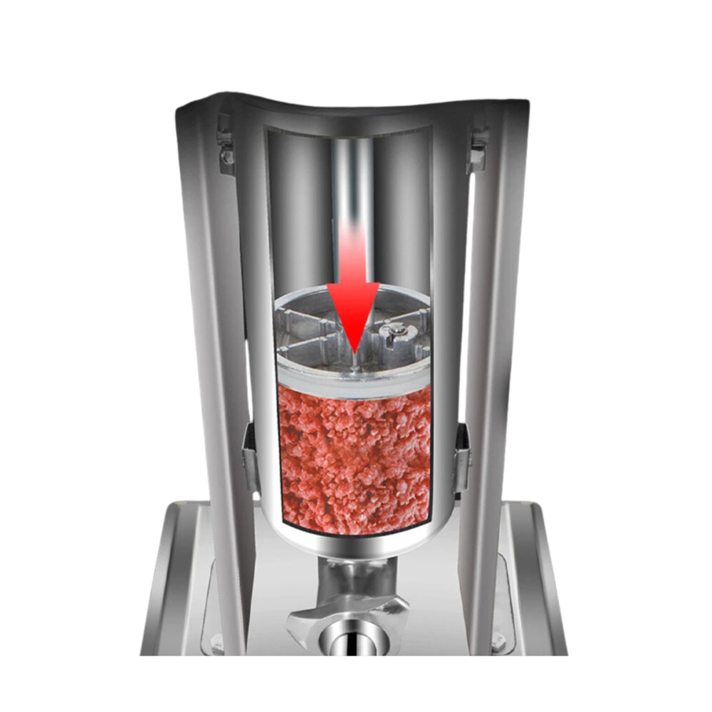 The reinforced piston with air-release valve eliminates bubbles and bursts, producing consistent texture from start to finish. Multiple stainless-steel stuffing tubes allow for any sausage style, from thin snack sticks to full boerewors rings.