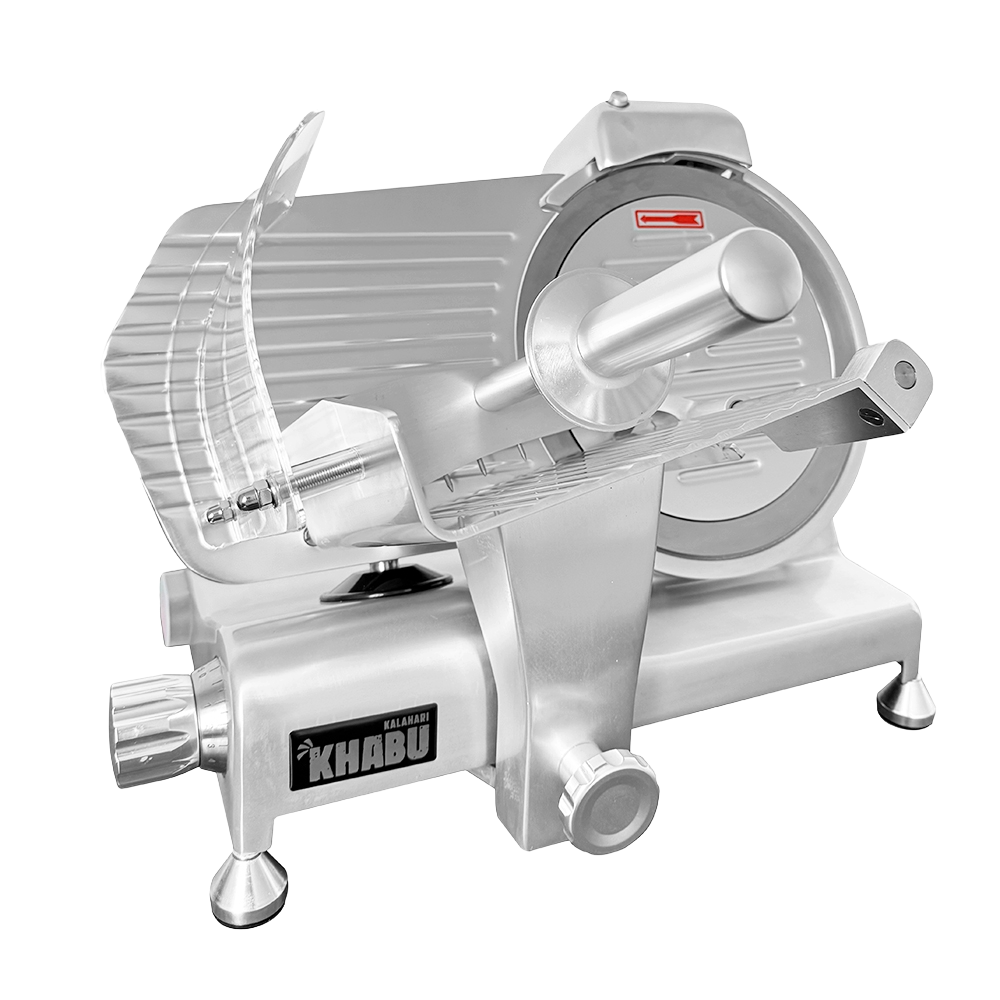 The KK SL250 is engineered for smooth, stress-free slicing. With a powerful 320W motor and a 250 mm hardened steel blade, it cuts through frozen meat, sausages, luncheon meat, and similar products with ease. The adjustable thickness dial lets you set slices from paper-thin to 12 mm, while the carriage arm keeps food steady and prevents slipping during use.