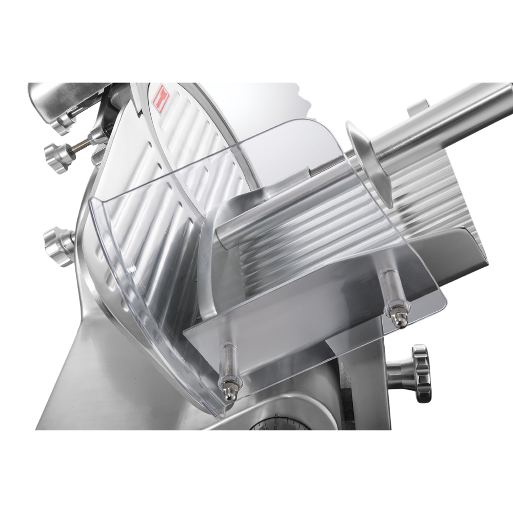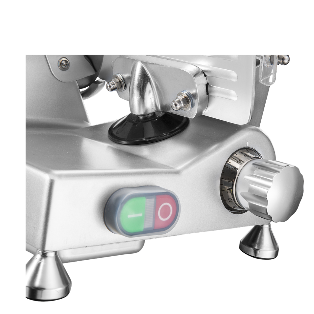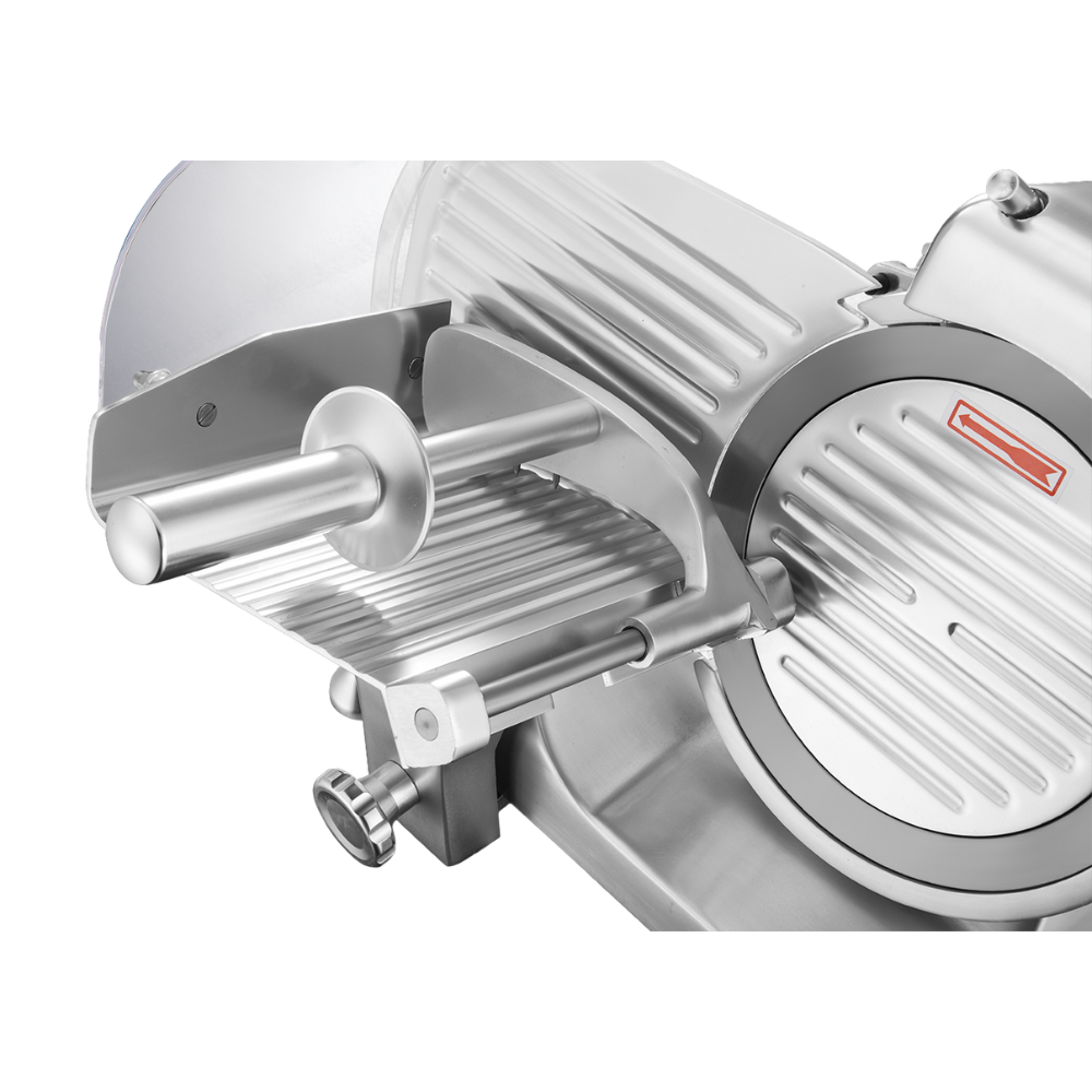 The KK SL250 is engineered for smooth, stress-free slicing. With a powerful 320W motor and a 250 mm hardened steel blade, it cuts through frozen meat, sausages, luncheon meat, and similar products with ease. The adjustable thickness dial lets you set slices from paper-thin to 12 mm, while the carriage arm keeps food steady and prevents slipping during use.