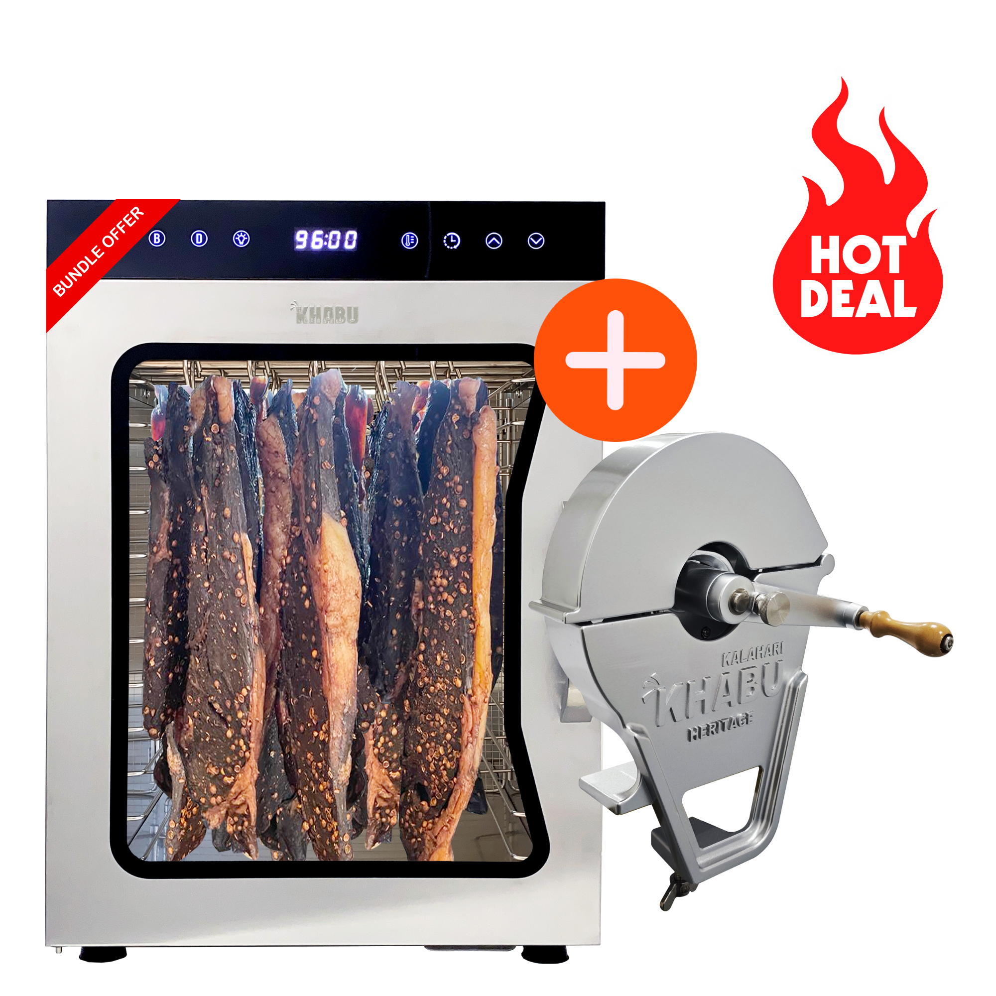- Feed opening accommodates biltong slabs up to 70mm wide