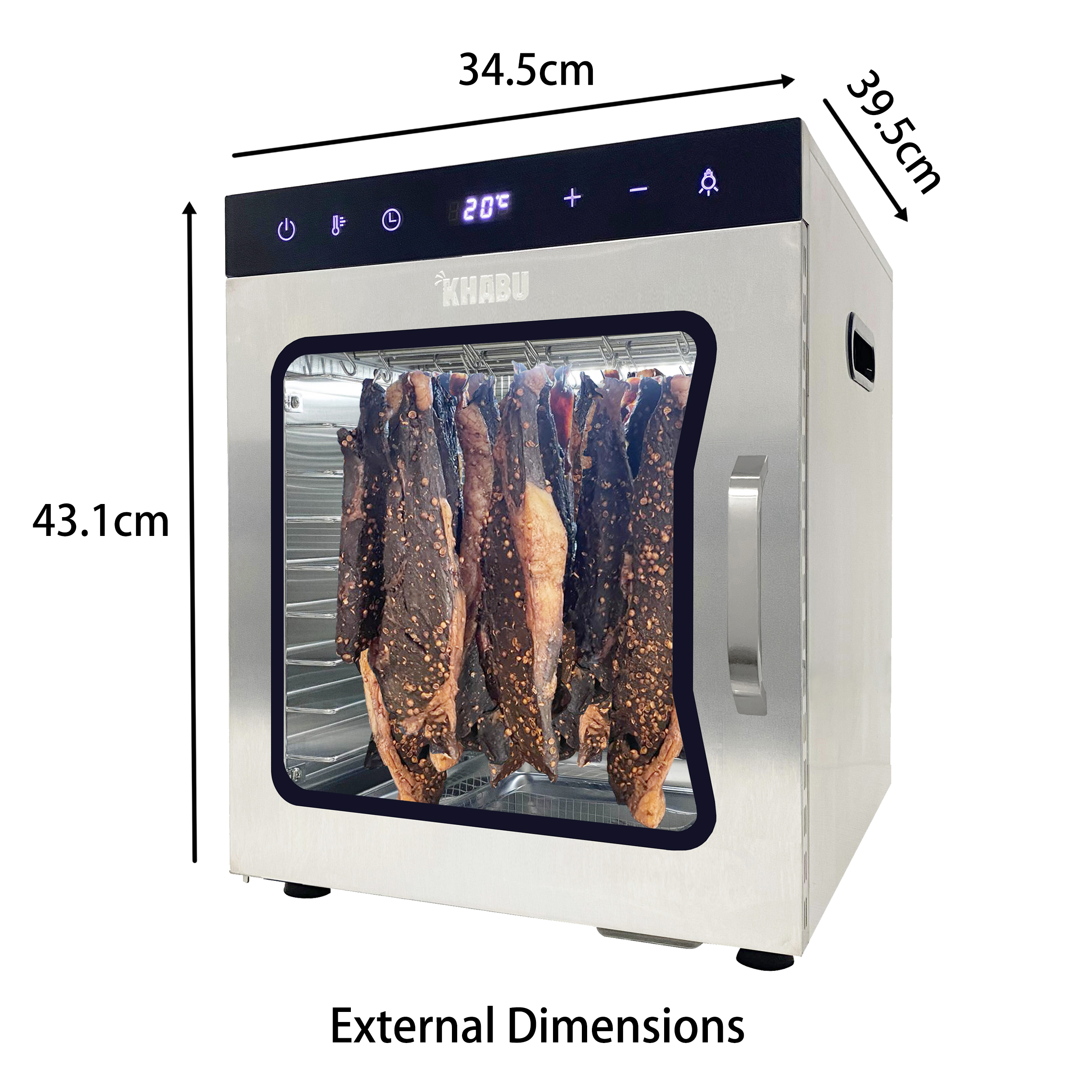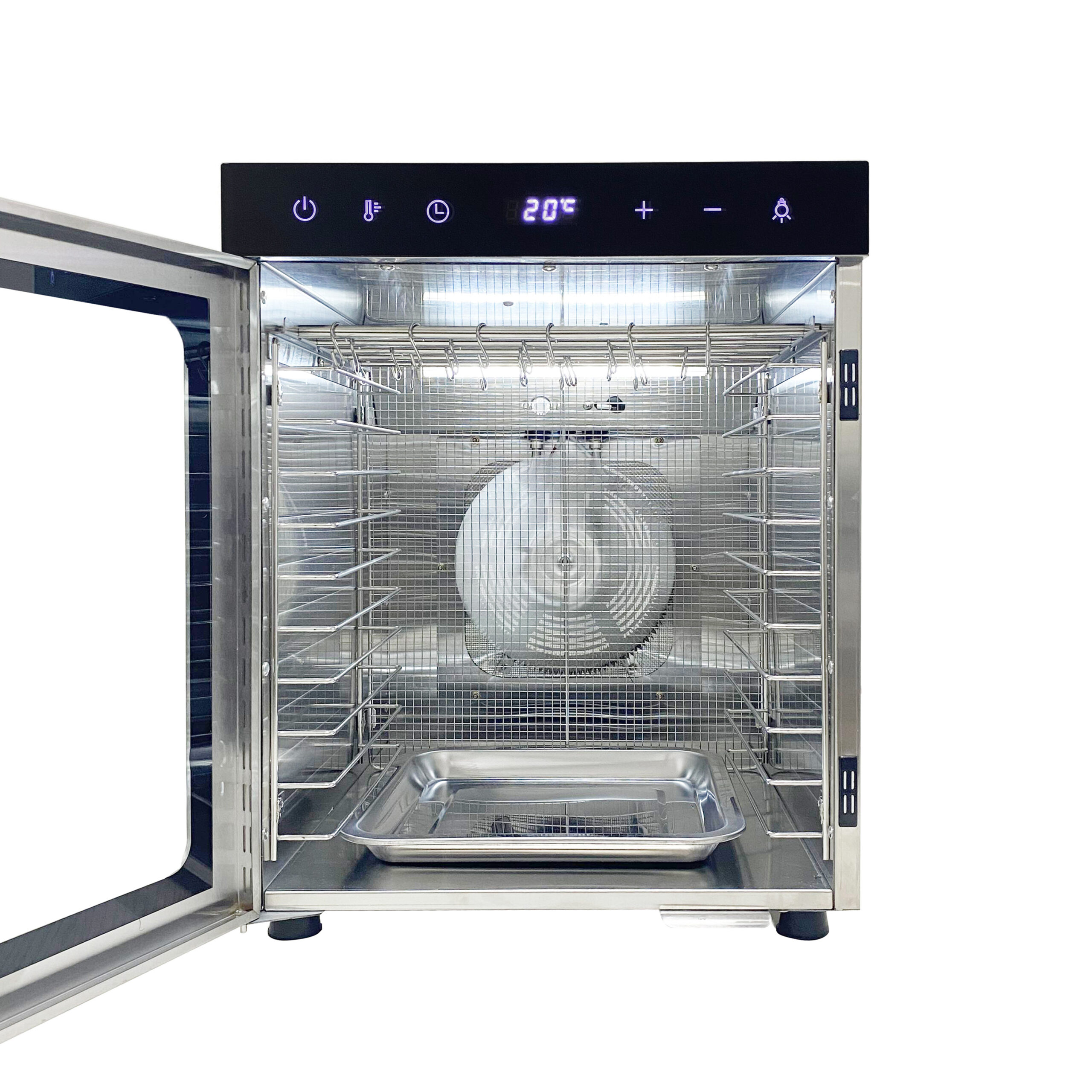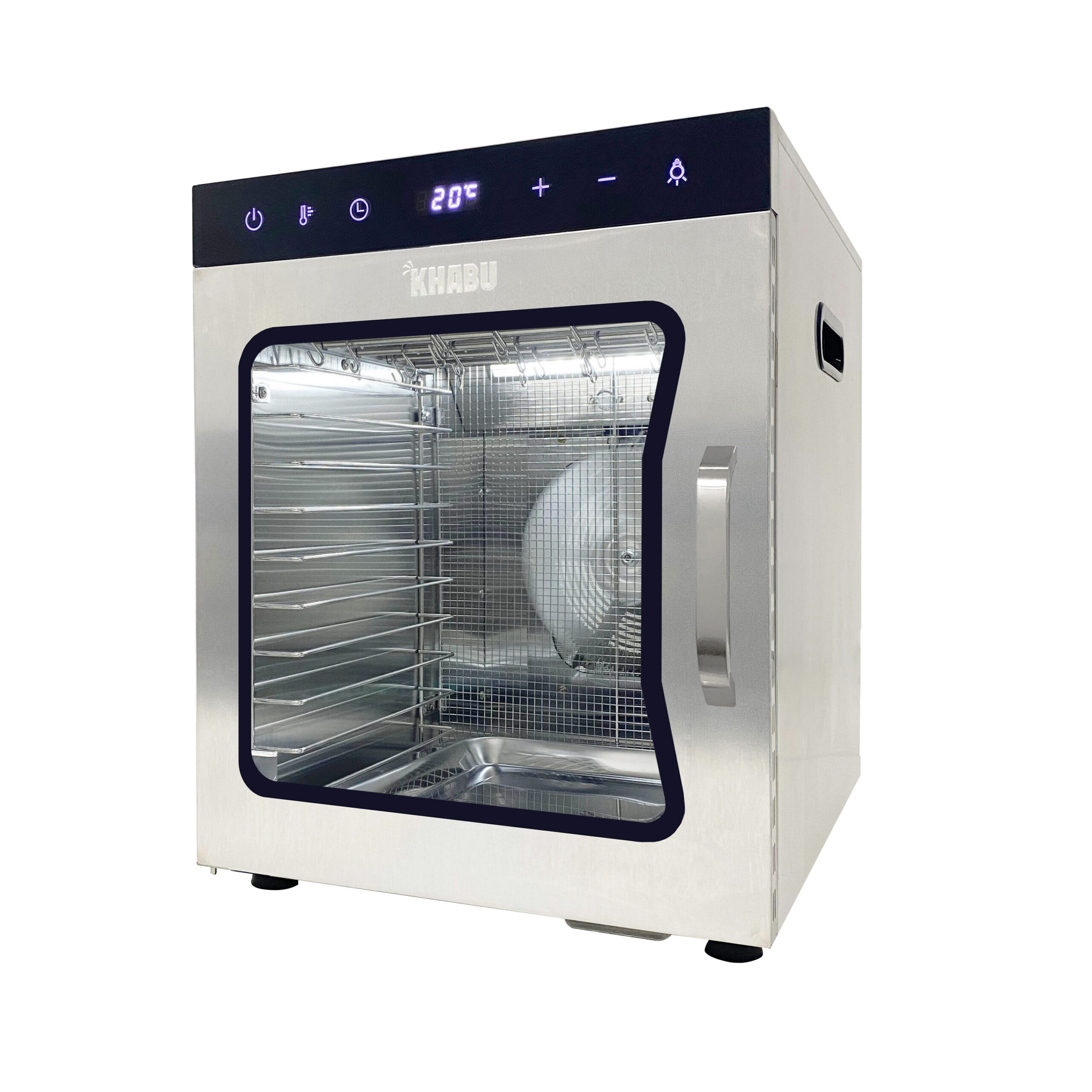 Drying starts at 20 Degrees Celsius, which sets it apart from conventional dehydrators that typically start at 35 Degrees Celsius. 24 hr timer.